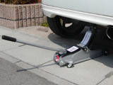 やはりローダウン専用のジャッキを使っています。さすがにパンタジャッキでは力不足。でもローダウンのせいかストロークが短くてちょっとつらい。
