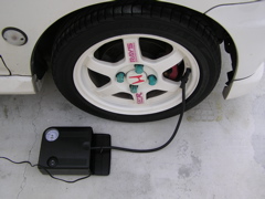 エアゲージ付きのコンプレッサーです。12v電源。これがあれば、自宅でエア調整が可能です。