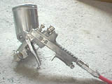 ジュントールで使わせてもらったスプレーガンです。プロ用はやはり違う。エアの調整バルブと塗料の調整バルブの両方を環境に合わせて設定し、さらに吹き出し口の噴霧形状を調整。そしてグリップのストローク調整などなど調整についてはお勧め設定にしてもらい、最低限の調整だけ自分で行いました。これでトゥデイとリーザのオールペンを実施しました。
