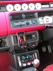 トゥデイの方はcarrozzeriaの外部入力オプション「CD-RB20」を追加しました。これはCDチェンジャーのIP-BUSの間に追加できるタイプでCDチェンジャーと外部入力が両方使えるタイプです。外部入力には名前がつけられるのでそこは「iPod」という名前に。iPodの装着はとりあえず吸盤で自作してみました。これなら横にも向けられる。iPod touchにはGセンサーを内蔵しているので、横に向けるとカバーフローというビューに切り替わります。で、縦置きで使っているときにコーナリングGがかかるとやっぱりカバーフローに切り替わるんですよね。けっこうおもしろい。【2007.10.06】