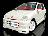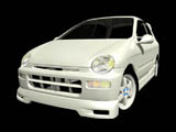 最初の外側の形からブーリアンモデリング(立体の四則演算のようなもの)でダクト、ウインカーなどを表現。エアロパーツまでつけるとかなり本物っぽくなってきました。だけどダクトから右タイヤの裏が見える・・・。いわゆるハリボテ。ライトの見え方にもはまりました。透明度に加えて屈折率を上げるとヘッドライトの質感がリアルに再現されます。またまた感動。【2002.11.23】