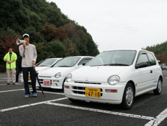 9時ちょっと前から、受付を開始しました。TRMの方が見え、本日の進行について説明をうけると、どうやら今回会場として青いパイロンでMTT11の専用会場を確保してもらっていたのでした。我々はそれに気づかず、青いパイロンを避けてクルマを並べていました。